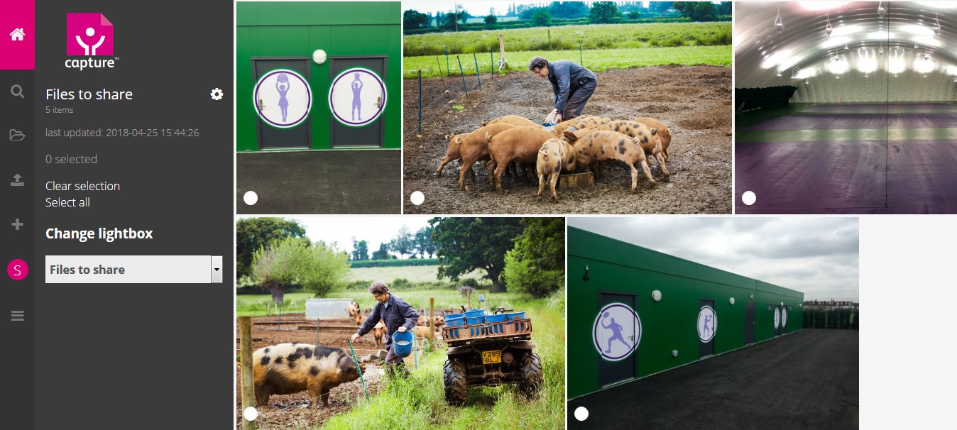 From the lightbox menu you can click on “Open panel” to view the lightbox in a panel at the bottom of the screen. When this is open, you can drag images from the search results above into the panel to add them to the lightbox.